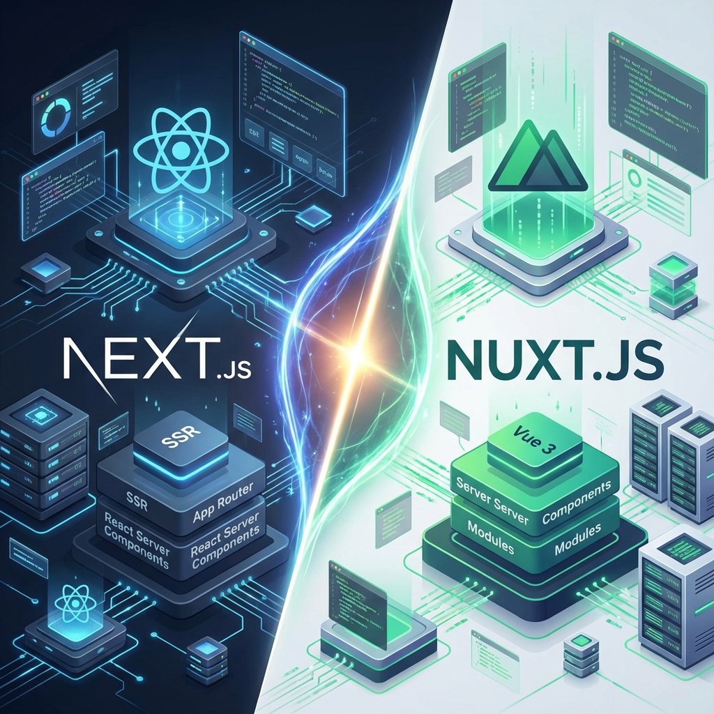 A beginner-friendly comparison of the two giants of the web: Next.js (React) and Nuxt.js (Vue).